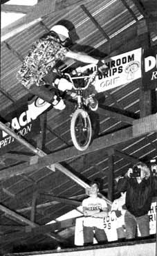 | Event: 1986 2-HIP KING OF VERT round 1. Date: november 8th, 1986. Place: Lasueur Minnesota. The pro jam saw the raddest riding ever! The crowd and the riders were totally wild. Mike Dominguez was blazin'! He did a canyon 540, ultra-high airs, a rafterplant and all kinds of other tricks. Ron Wilkerson: Dude, I totally forgot to do a no-hander and a rocket air in the jam. Oh well, it was cool; I did a rafterplant, a backwards drop-in and 270 drop-in, among other moves. All this on an unfamiliar freewheel. I bailed three times in my run; they were all minor knee-slide bails, but they cost me some points. Josh White bailed on a 540 canyon but pulled it off in his next run. He was jammin', too. He had killer variations and was makin' the crowd drool. Randy Tischmann was gettin' pretty rad but hung his back wheel on the channel and faceplanted early in his run. He was okay, though. The jam lasted 20 minutes for four guys. The pros did six runs each. During the 'pro jam, the crowd was so intense, they were screaming, "Air, yeaaah! Air, yeaaah!" After the jam, the judges checked over the videotape. When they were through, it was decided: Mike won, Josh took second, Ron got third and Randy got fourth. The results turned out fair, and everyone was happy. Ron Wilkerson: I was probably happier than anyone, though, 'cause the contest was a success. A direct quote from the likes of Mike Dominguez and John Ker: "This was the raddest contest ever!" After everyone had left, we had to tear down the ramp 'cause the landlord needed the building the next day. It went quickly, though-the excitement was still there. We finished around 3:30 a.m. It was snowing lightly outside, and I was dead tired. Now it's time to start working on 2-Hip King of Vert, round two: The Enchanted Ramp! OPEN PRO RESULTS. 1.Mike Dominguez 2.Josh White 3.Ron Wilkerson 4.Randy Tischmann OPEN EXPERT RESULTS. 1.Dale Matson 2.Krt Schmidt 3.Thad Miller 4.Ryan Benning 5.Brian Dahl 6.Tim Krueger 7.John Hughes 8.Rob Stieger 2hip.com: NOVEMBER 8, 1986 LESEUR, MNKING OF VERT #1 JAMThe very first 2-Hip BMX event. The scheduled Ramp City park lost its lease, so we moved it to be held on a semi-portable half in verrrry cold barn. The KOV introduced the 'Jam Format' to BMX contests. "The Pro jam most intense 20 minutes of Freestyle I've ever seen." Lew, Freestylin Mag. (Most Memorable Moments: Rafter footplants by MikeD.+Ron Wilkerson; Mike D's 540's inbetween the rafters; the first snow of the season outside the barn; the Energy INSIDE the barn=ELECTRIC, and even in the cold Josh White, Mike Dominguez, Ron Wilkerson + others were setting the audience on FIRE.) |