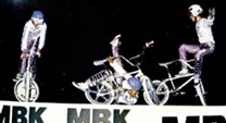 Date: 24 novembre 1985 Organisation: Bicross Magazine. 13 000 spectateurs. Demo de Thierry Girard en trial et des Mad Dogs de MBK en free. Record du monde de pogos avec 620 rebonds par Ghislain Janneneau en velo trial Ron Wilkerson et Rich Sigur n'ont pas su convaincre la foule. Ron Wilkerson, le captain du team Haro n'a pas assuré le quart de ce qu'il est capable de donner. Arrivé la veille, il souffrait du décalage horaire et la rampe était loin d'être parfaite. | Minijournal avec Patrice Drevet. ![]() ![]() Mad Dogs |