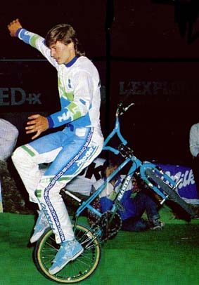 | switzerland squeaker | RL Osborn, BMX Action september 1985: I started wheel-walkin' about a year ago, but I was standing on the front pegs. It was a variation for front wheel hops. Then, I saw Martin Aparijo and Eddie Fiola doin' it the same way. All three of us were attempting to perfect it using the front fork pegs. Then while I was in Switzerland (in May), I tried doing it with my left foot on the pedal and I got it dialed. I haven't seen Eddie or Martin since I got back, so I don't know if they learned it this way yet. Yup, it helped me a lot doing those shows in Switzerland. Gork, BMX Action september 1985: With the recorder goin' full bore and RL scooting backwards tons of times for the camera, I intensely quizzed the Rad Lad for every detail I could get on how to do this maneuver. Imagine my surprise back at the office when the last word I heard was "Switzerland" and then a "squeak... squeak... squeak!" of RL 's front brakes when he would push the wheel. Not one word was left from there on -only the squeaking of brakes drowning out all the taped info. After playing it over a few times for Steve, a little 60 watt light bulb appeared above his head. "That's what we'll call it, The SWITZERLAND SQUEAKER!" I thought that was kinda dumb at first, but after a few minutes of saying it, I began liking it The Switzerland Squeaker it was. |
